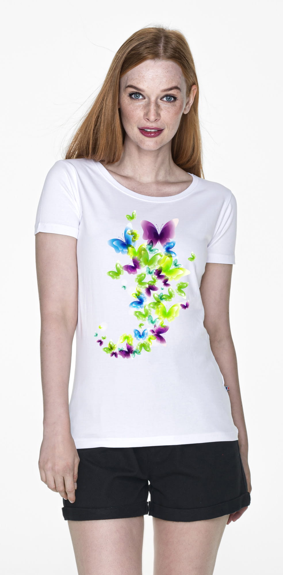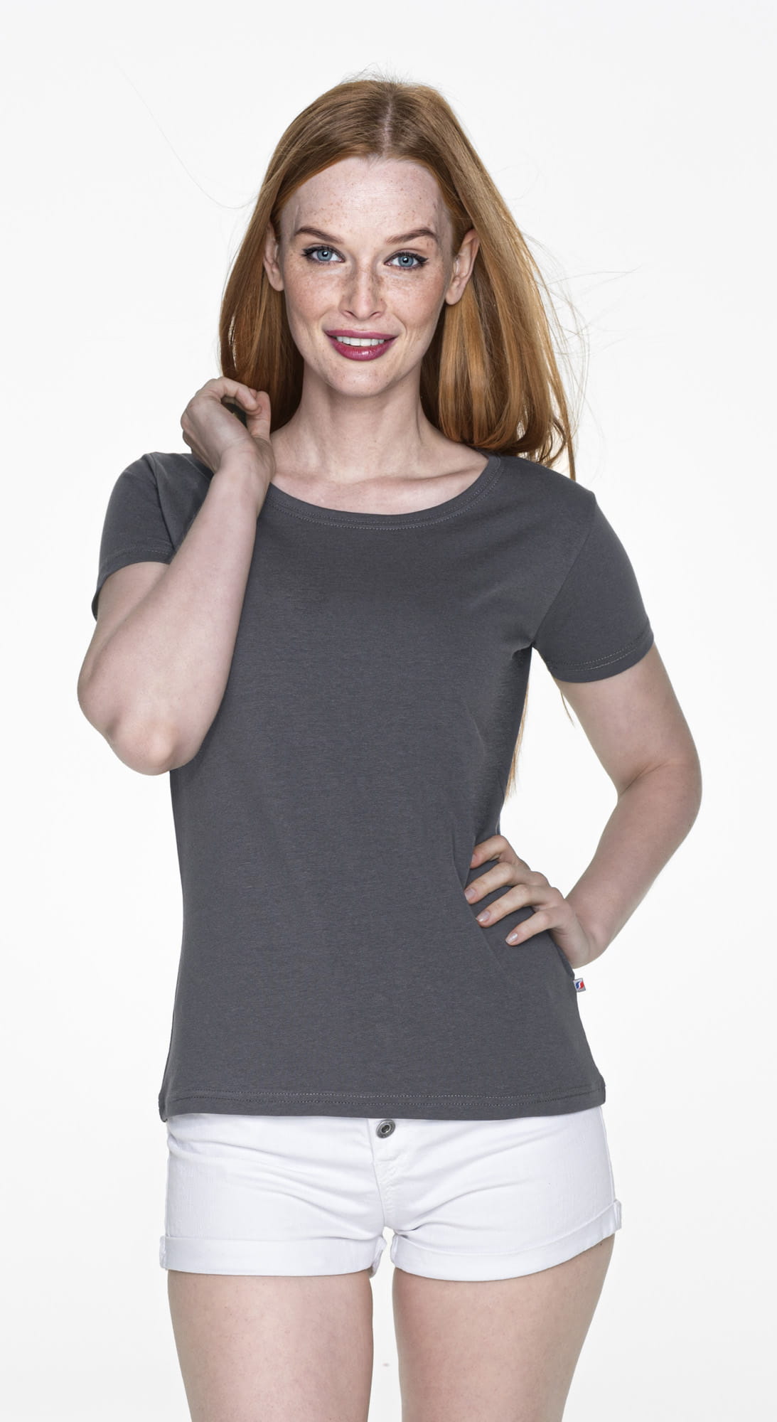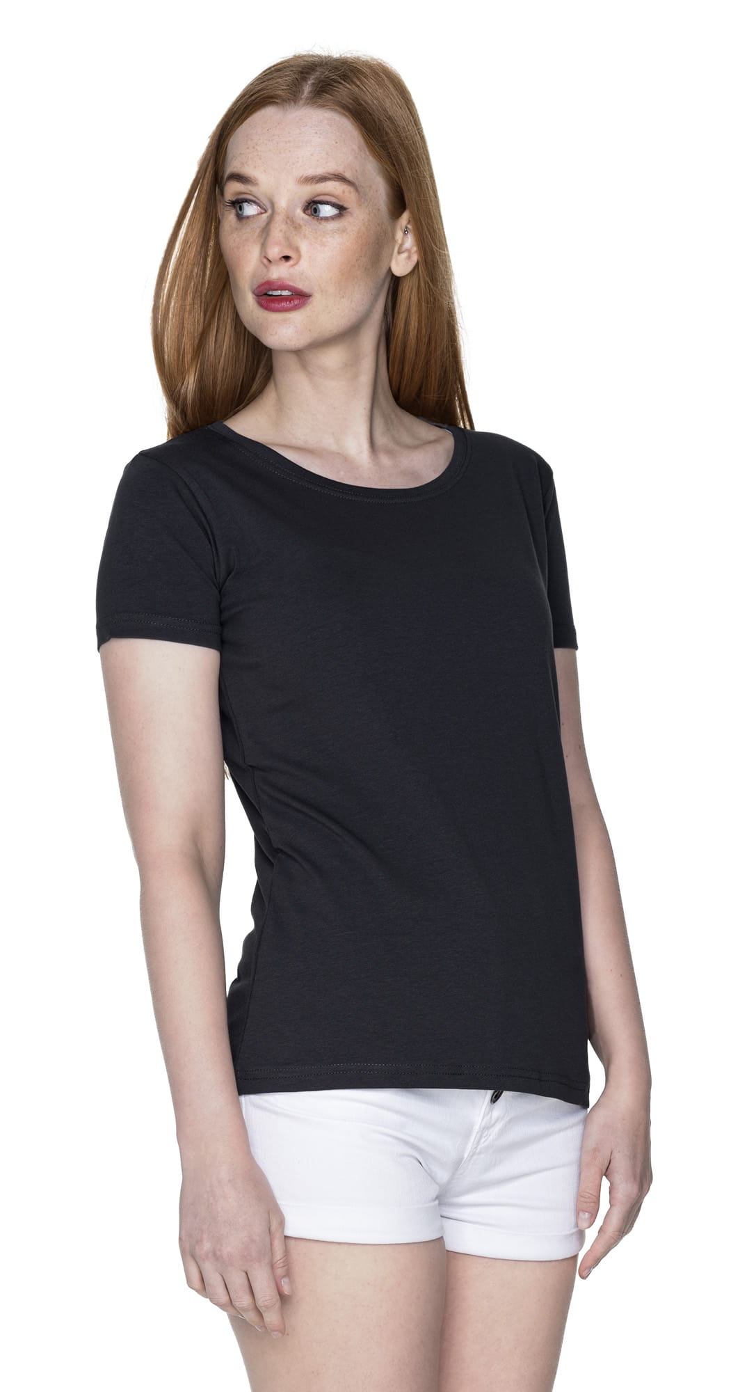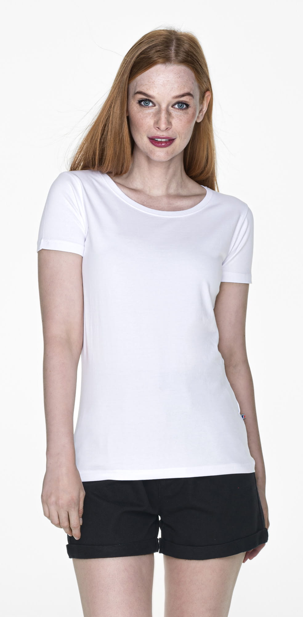 - t-shirt damski z krótkim rękawem wykonany z elastycznej dzianiny single jersey;