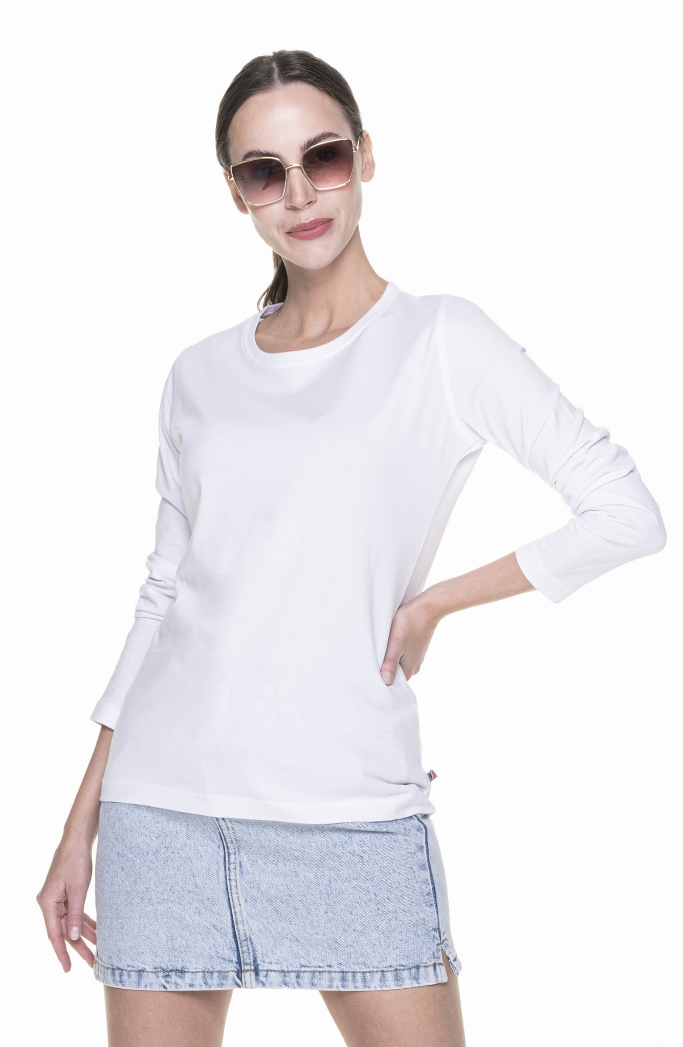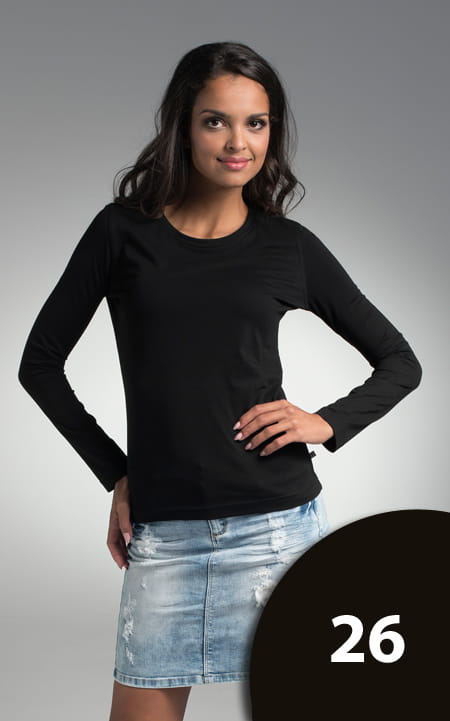 - t-shirt damski z długim rękawem wykonany z dzianiny single jersey;