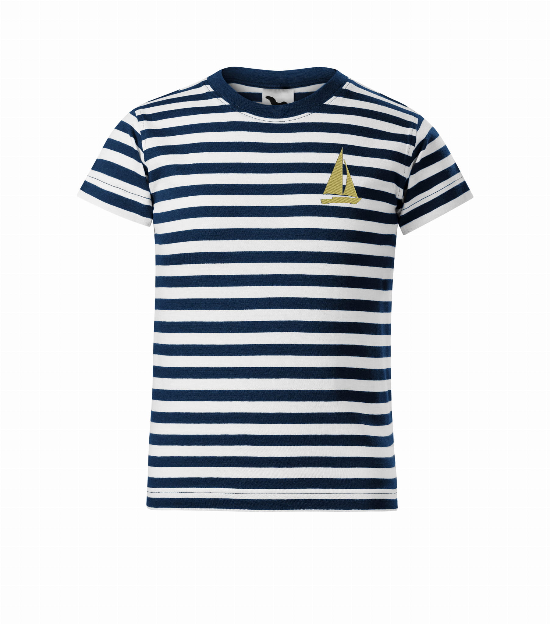 Koszulka dziecięca w paski żeglarska z haftem jachtu Sailor 803