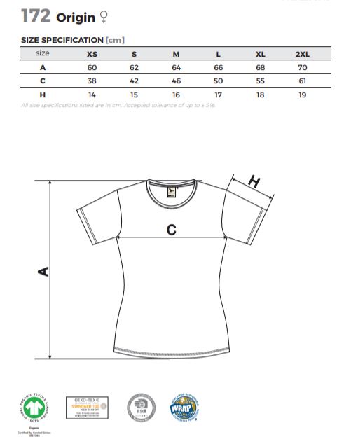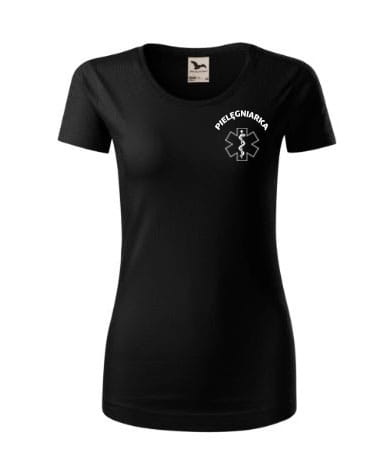 Koszulka bawełniana Origin 172 firmy Adler z nadrukiem pielęgniarka i logo eskulap. Koszulka wysokiej jakości z bawełny organicznej - certyfikat w plikach do pobrania.