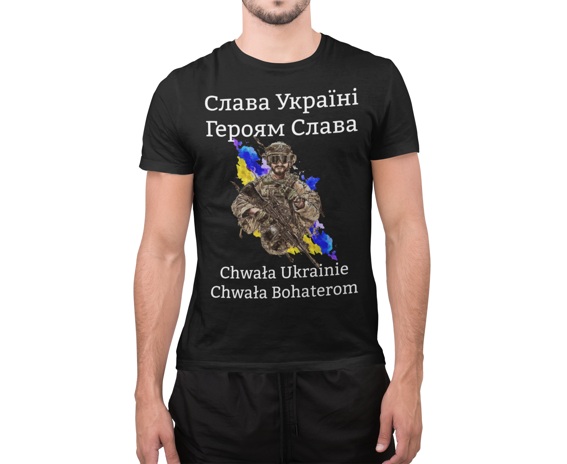 Koszulka męska solidarni z Ukrainą Chwała Ukrainie Chwała Bohaterom