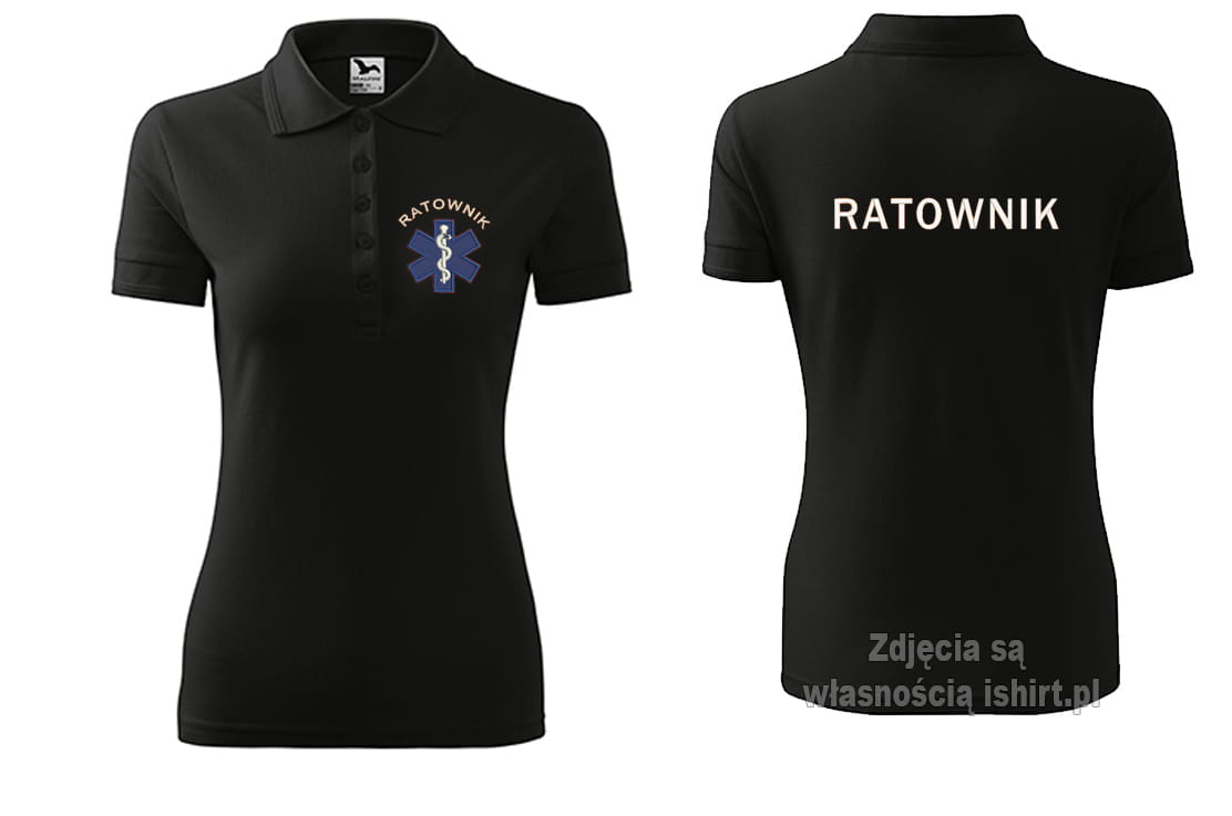 Koszulka polo damska z haftem ratownik. Haft z przodu i z tyłu