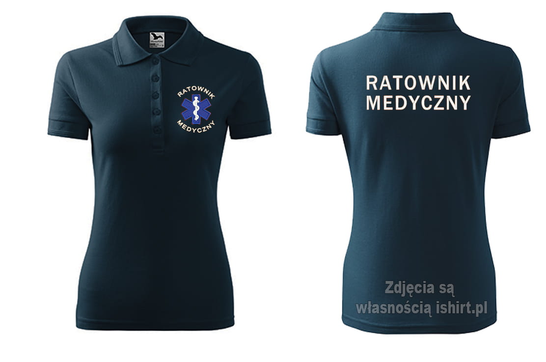 Koszulka polo damska z haftem ratownik medyczny. Haft z przodu i z tyłu
