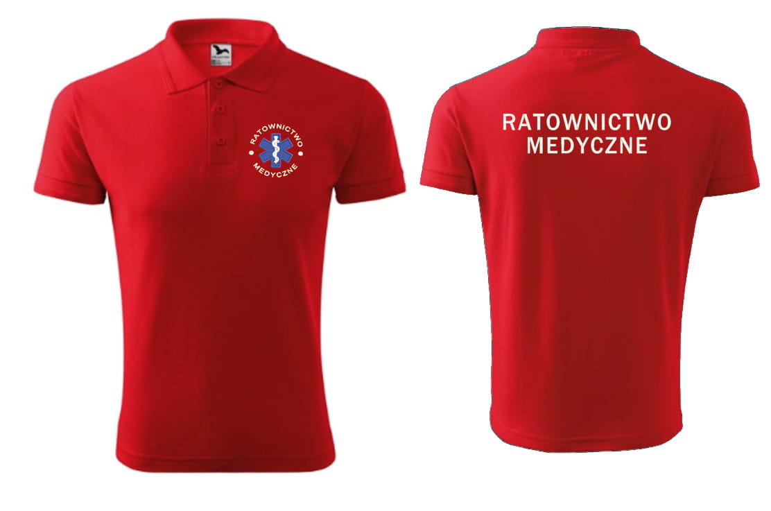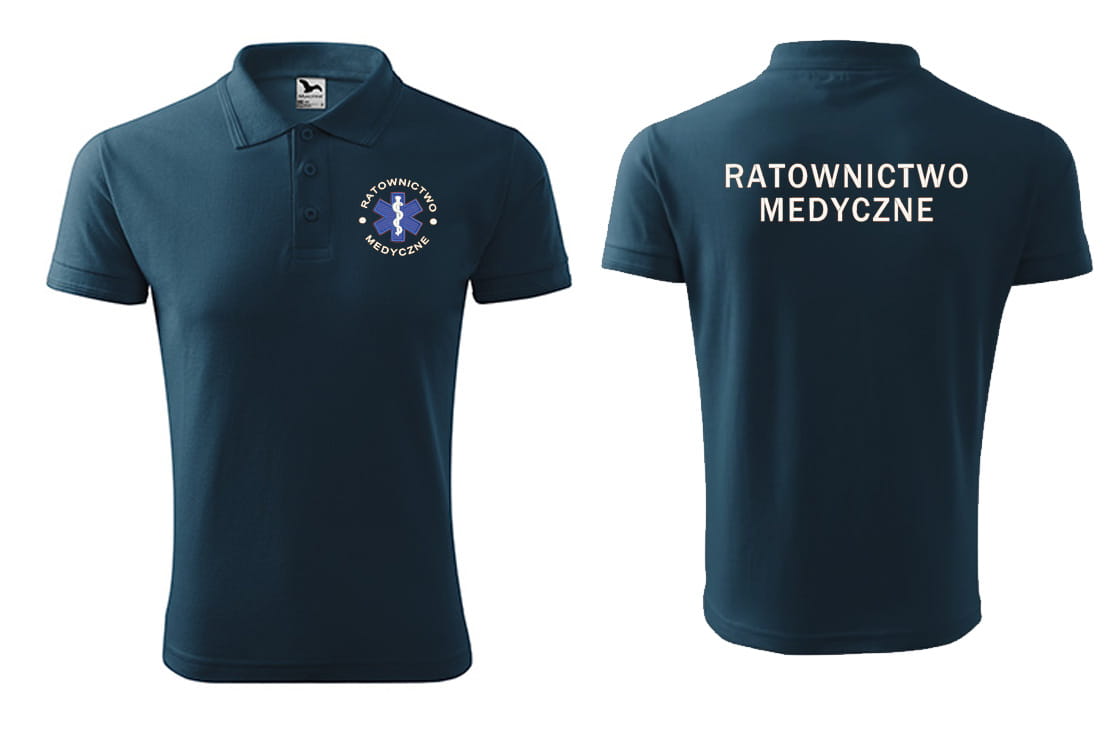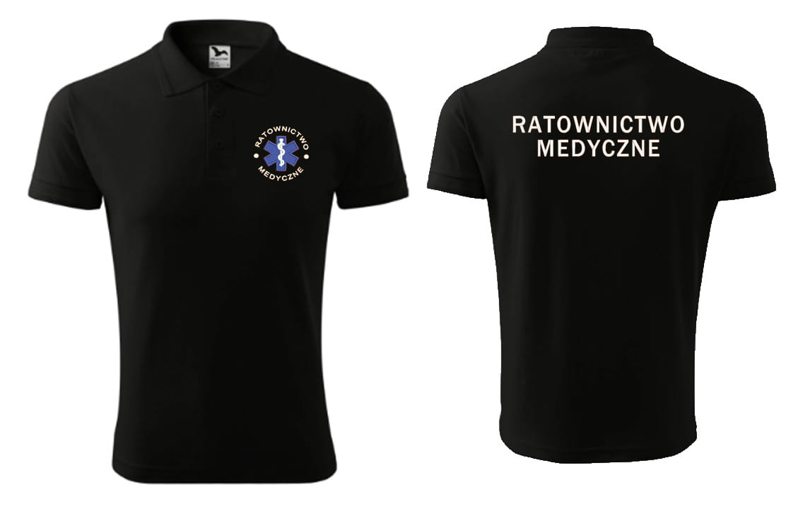 Koszulka polo męska z haftem ratownictwo medyczne. Haft z przodu i z tyłu