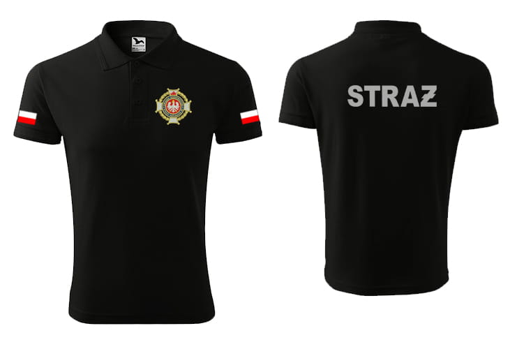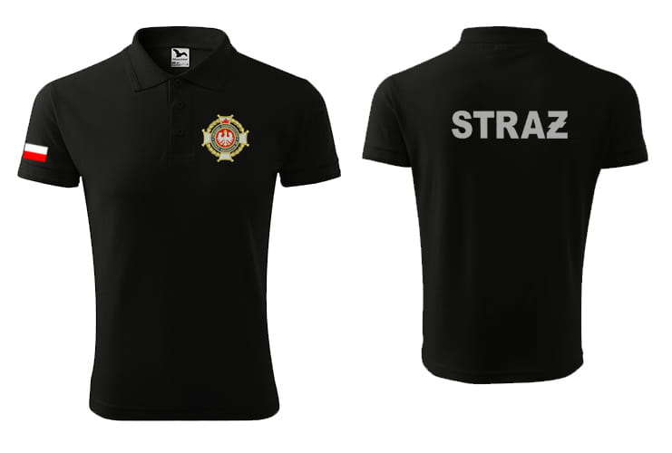 Koszulka polo męska z haftem na lewej piersi loga PSP oraz haftem na plecach STRAŻ.