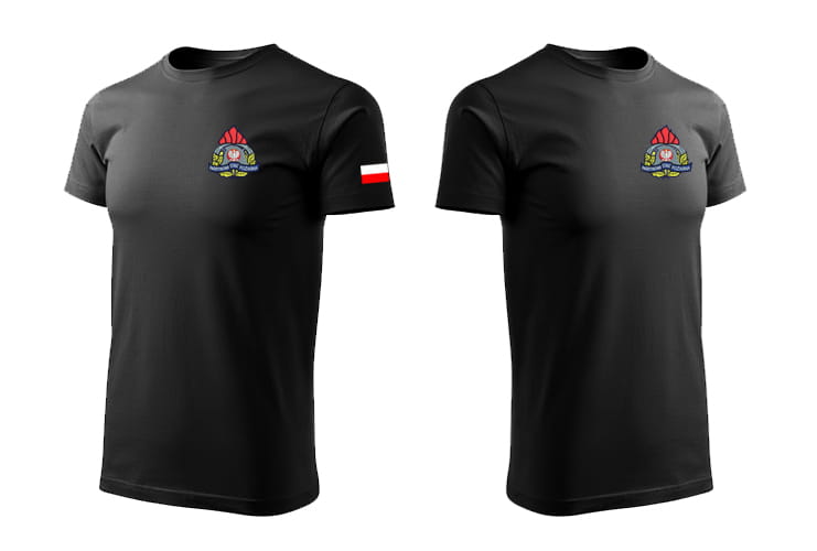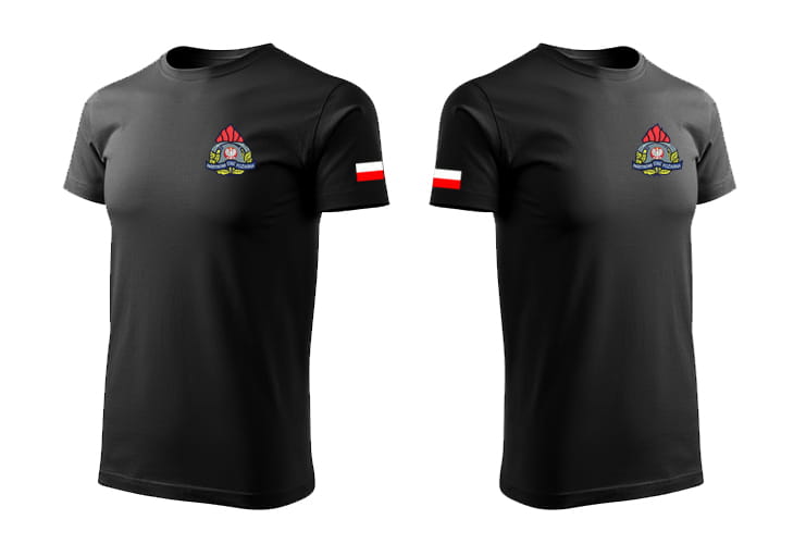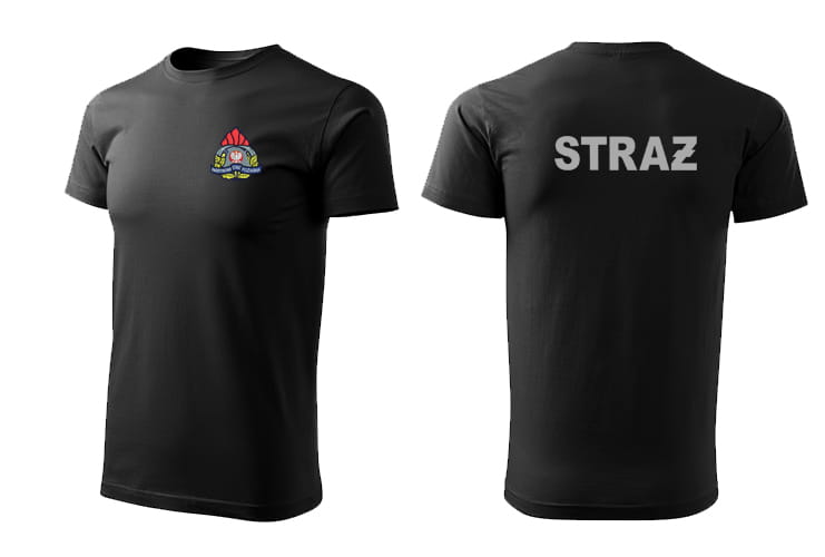 Koszulka męska z haftem na lewej piersi loga PSP oraz haftem na plecach STRAŻ.