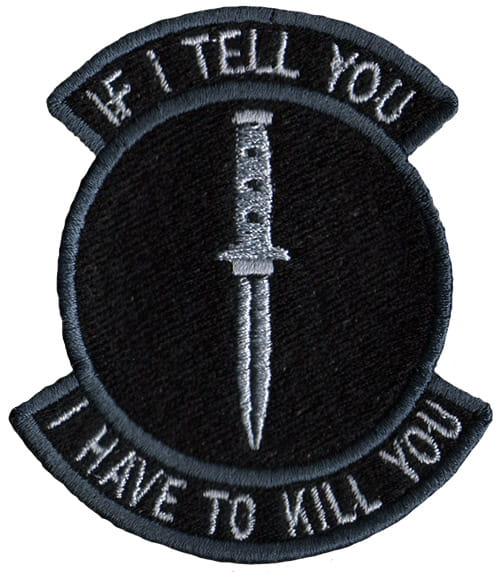 Morale Patch - IF I TELL YOU I HAVE TO KILL YOU o wymiarach 72x86mm. Naszywka wykonana została bez użycia materiału podkładowego takiego jak filc czy elanobawełna. Ten sposób wykonania eliminuje strzępiące się brzegi materiału podkładowego. Naszywki tkane nie strzępią się na brzegach i nie marszczą się wewnątrz.