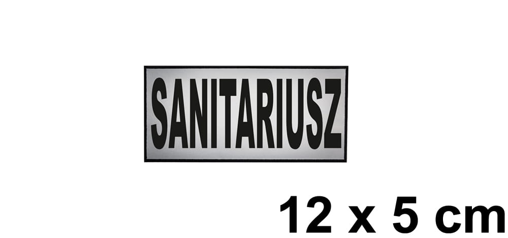 Naszywka odblaskowa emblemat z napisem SANITARIUSZ 12 x 5 cm.