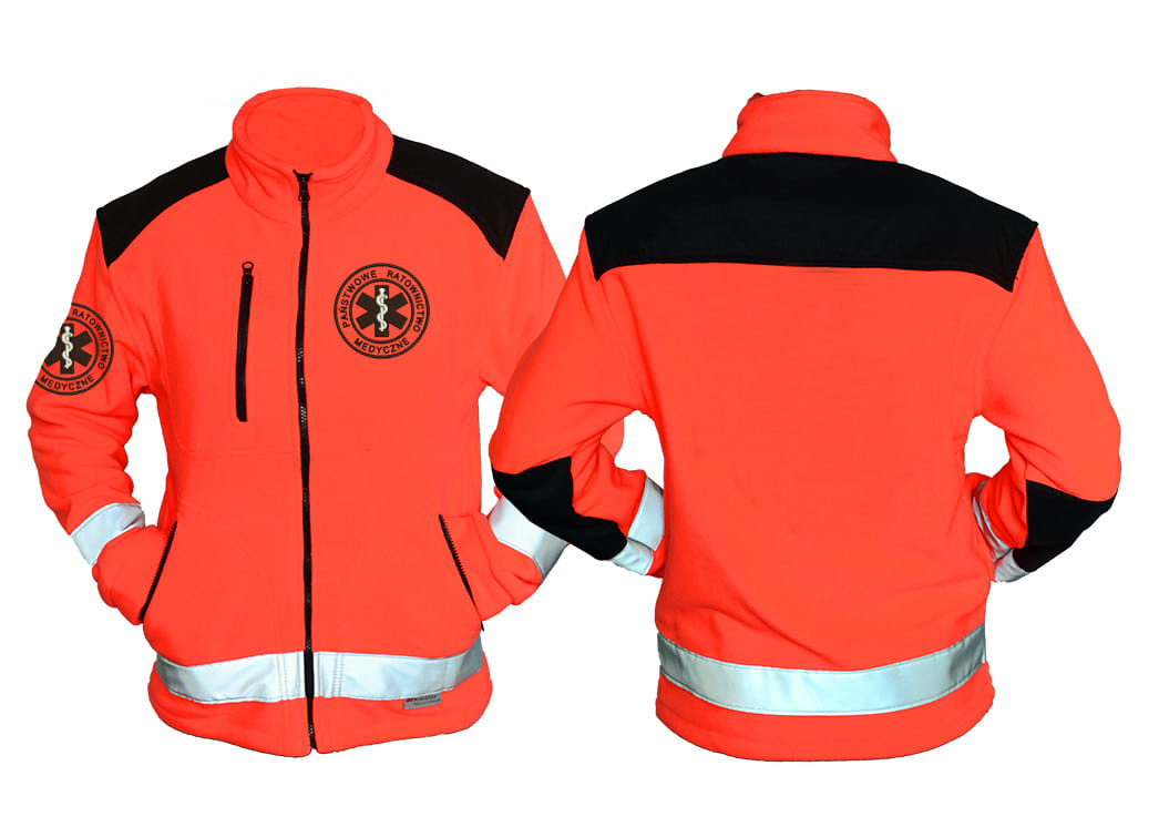 - Haft komputerowy na lewej piersi i na rękawie -PRM logo