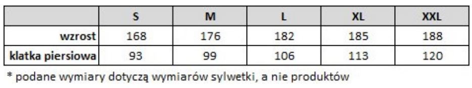 - Podane wymiary dotyczą wymiarów sylwetki, a nie produktów!